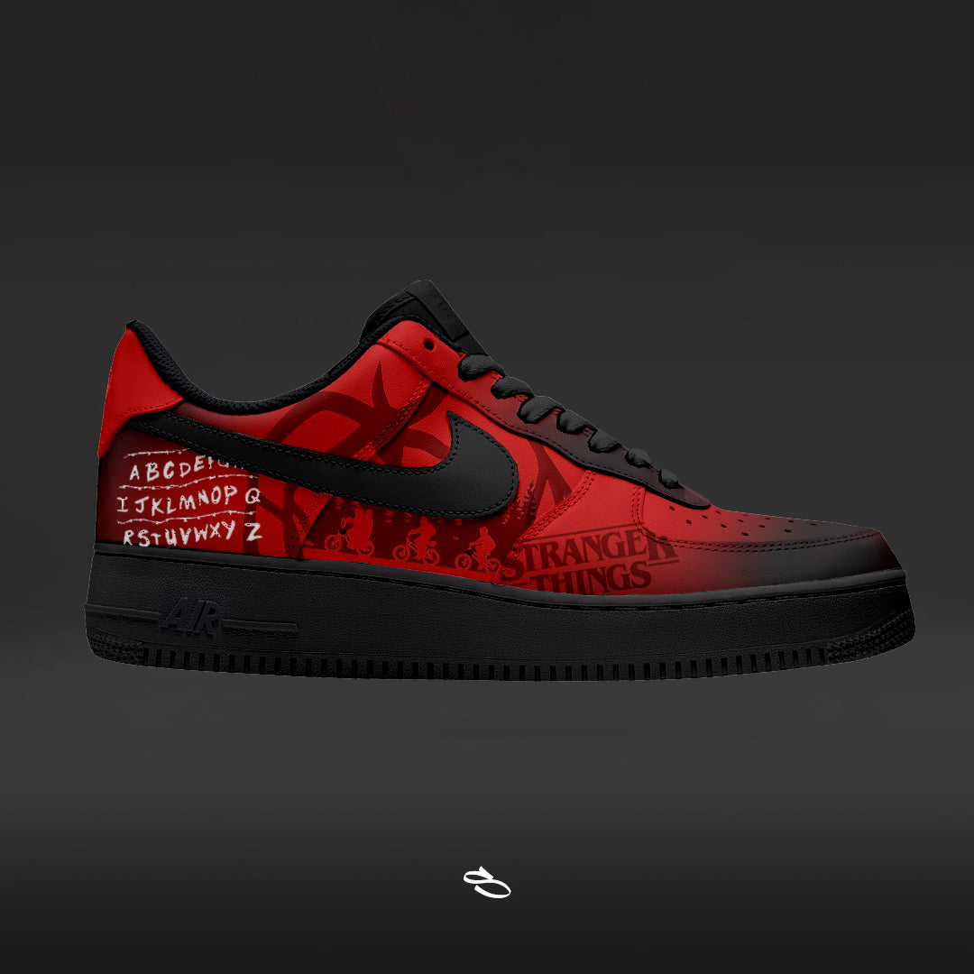 Introducing the Stranger Things collections - a unique and stylish custom design of the classic Nike Air Jordan 1. With intricate details inspired by the popular series, this shoe is sure to make a statement. Enjoy the comfort and functionality of Nike while proudly displaying Stranger Things