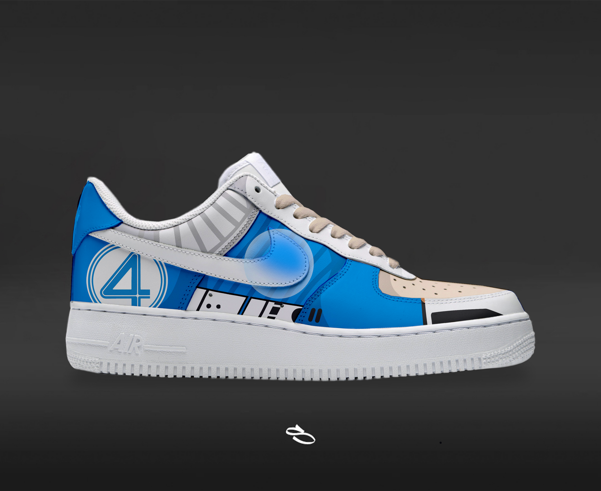 Introducing the Fantastic 4 - a unique and stylish custom design of the classic Nike Air Force 1. With intricate details inspired by the popular franchise, this shoe is sure to make a statement. Enjoy the comfort and functionality of Nike while proudly displaying Fantastic 4.