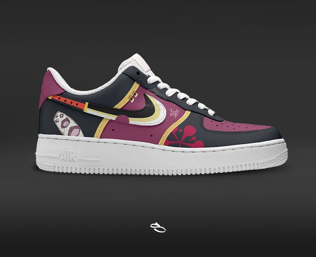 Introducing the Tengen Uzui Demon Slayer Air Force 1 - a unique and stylish custom design of the classic Nike Air Force 1. With intricate details inspired by the popular anime series, this shoe is sure to make a statement. Enjoy the comfort and functionality of Nike while proudly displaying Tengen Uzui Demon Slayer.