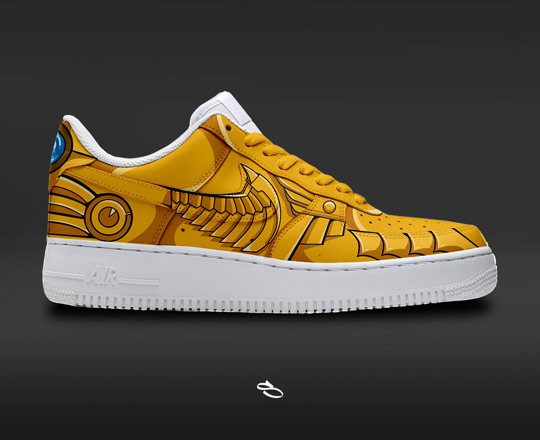 Introducing the Yu Gi Oh - a unique and stylish custom design of the classic Nike Air Force 1. With intricate details inspired by the popular anime series, this shoe is sure to make a statement. Enjoy the comfort and functionality of Nike while proudly displaying Yu Gi Oh.