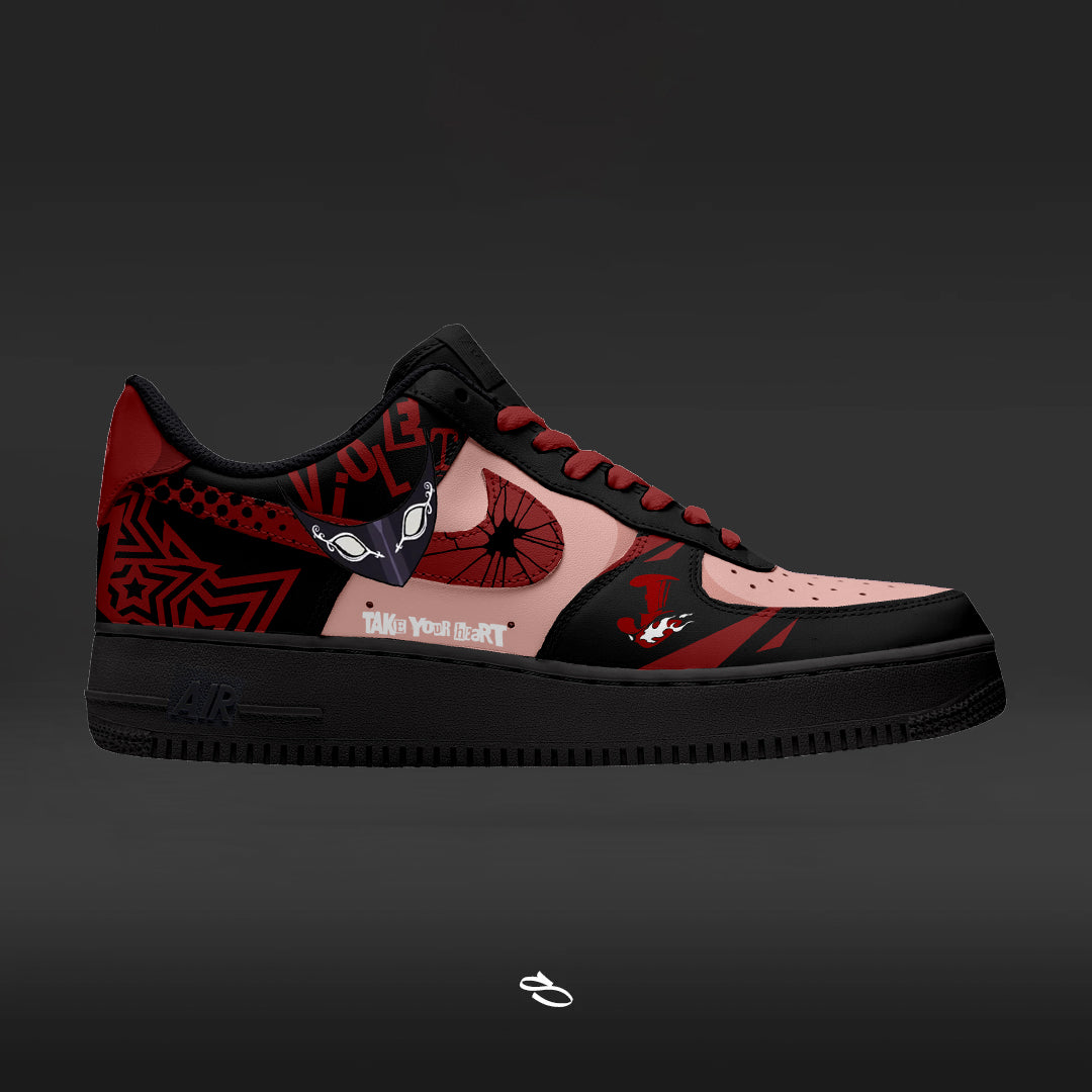 Introducing the Persona 5 Collections - a unique and stylish custom design of the classic Nike Air Force 1. With intricate details inspired by the popular game series, this shoe is sure to make a statement. Enjoy the comfort and functionality of Nike while proudly displaying Persona 5.