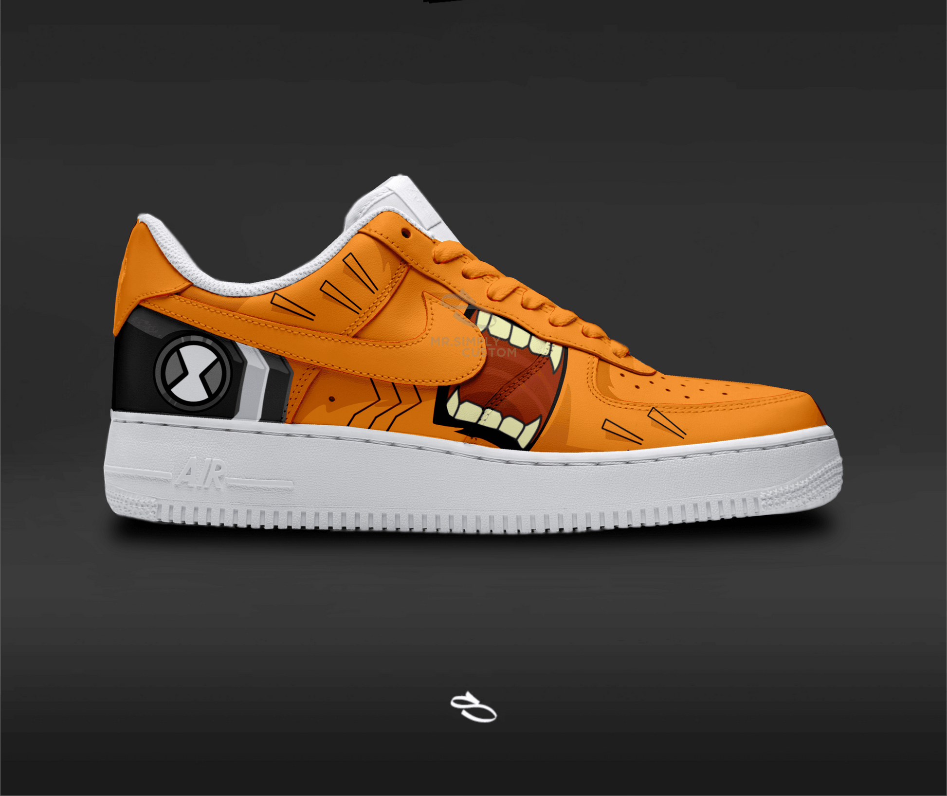 Introducing the Ben 10 Collection - a unique and stylish custom design of the classic Air Force 1. With intricate details inspired by the popular franchise series, this shoe is sure to make a statement. Enjoy the comfort and functionality of Nike while proudly displaying Wildmutt Ben 10.