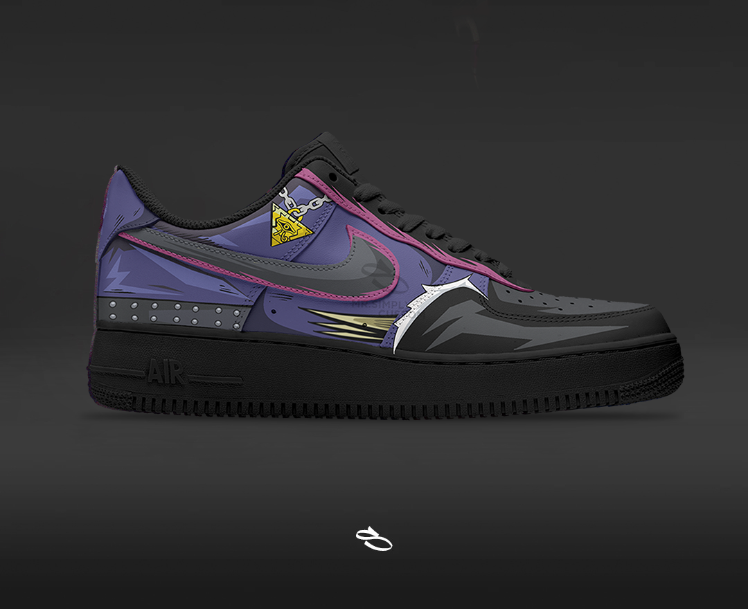 Introducing the Yu Gi Oh - a unique and stylish custom design of the classic Nike Air Force 1. With intricate details inspired by the popular anime series, this shoe is sure to make a statement. Enjoy the comfort and functionality of Nike while proudly displaying Yu Gi Oh.