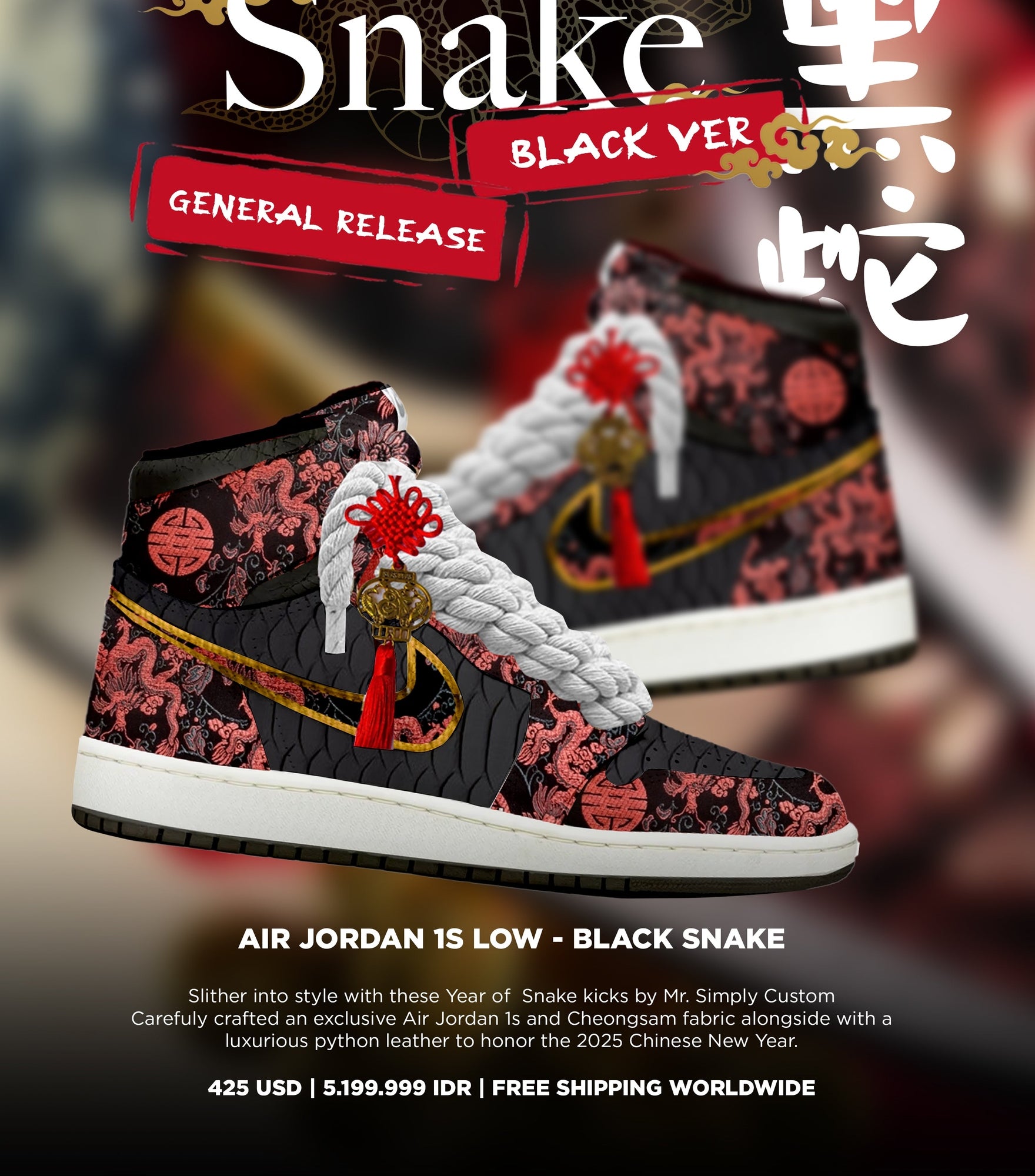 Step into tradition and style with the Mr. Simply Lab Year of the Snake Edition. This unique reinterpretation of the classic Jordan 1 Low is a testament to craftsmanship and cultural celebration. Each pair is meticulously deconstructed and reconstructed, blending modern design with timeless heritage.