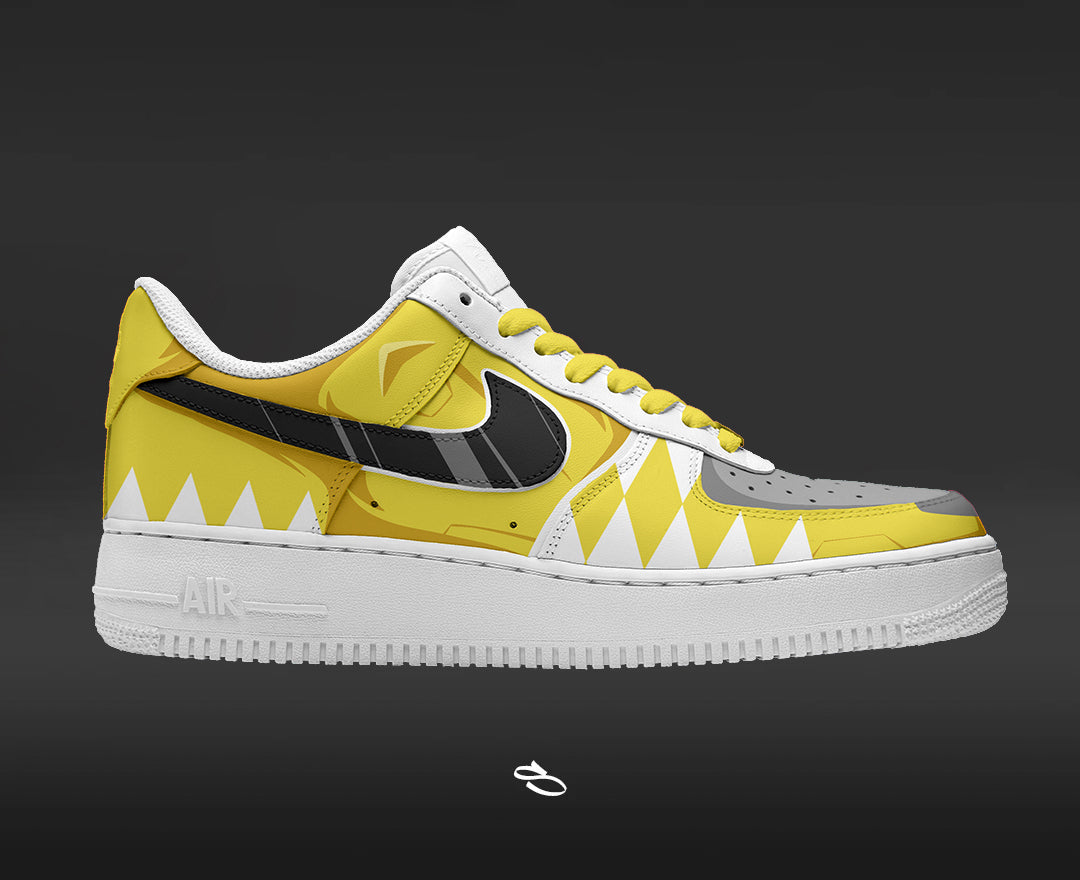 Introducing the Mighty Morphin Power Ranger - a unique and stylish custom design of the classic Nike Air Force 1. With intricate details inspired by the popular series, this shoe is sure to make a statement. Enjoy the comfort and functionality of Nike while proudly displaying Mighty Morphin Power Ranger